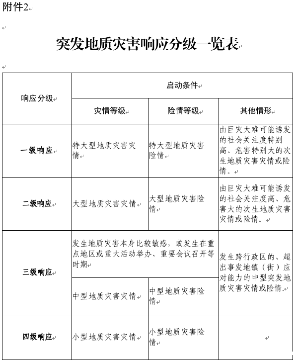 (2)发生跨行政区划的、超出事发地镇应对能力的小型突发地质灾害灾险情。