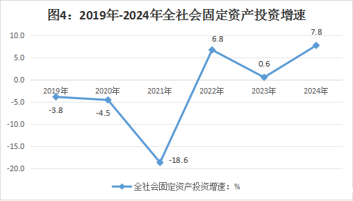 全年全社会固定资产投资总额比上年增长7.8%,其中,建安工程投资(不含农户)增长6.2%;工业投资增长63.4%,其中,制造业投资增长65.8%;技改投资增长172.4%。(图4)