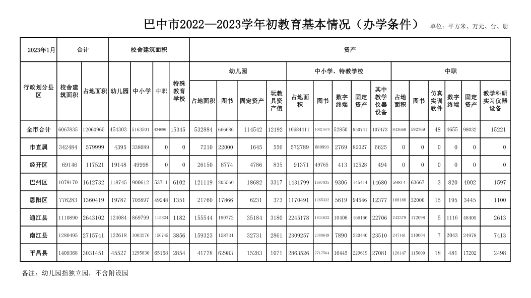 2022—2023学年初教育基本情况(办学条件)