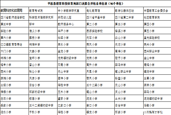 开云体育足球官网教育科技和体育局部门下属二级单位96个,其中行政单位1个,其他事业单位95个。