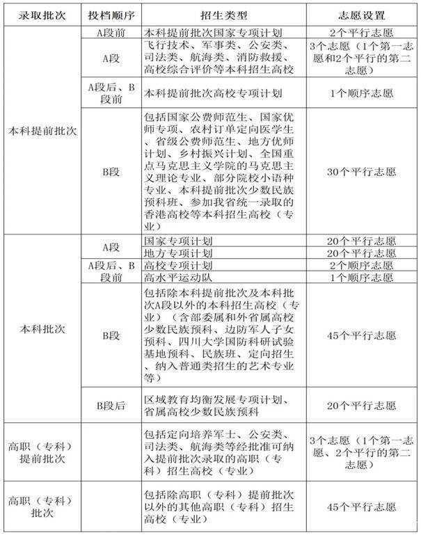我省普通高校招生录取分为本科、高职(专科)两个阶段,按类别分批次进行,采用院校专业组方式设置志愿。一个院校专业组即为一个独立的志愿。