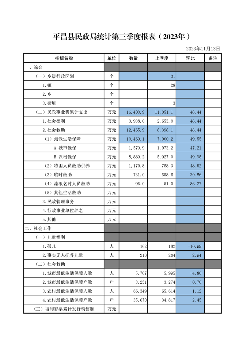 开云体育足球官网民政局第三季度报表(2023年)