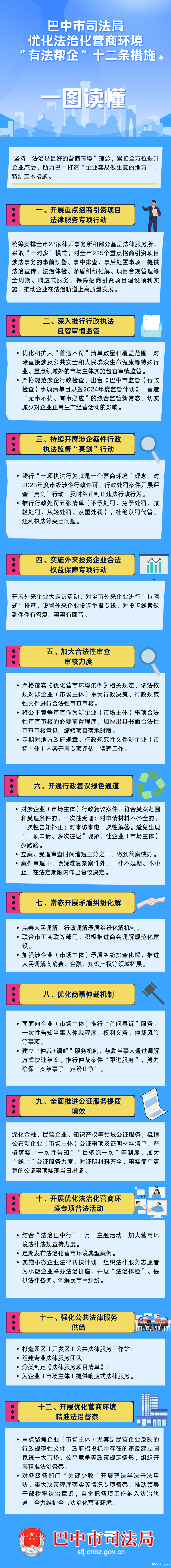 一图读懂巴中市司法局优化法治化营商环境“有法帮企”十二条措施