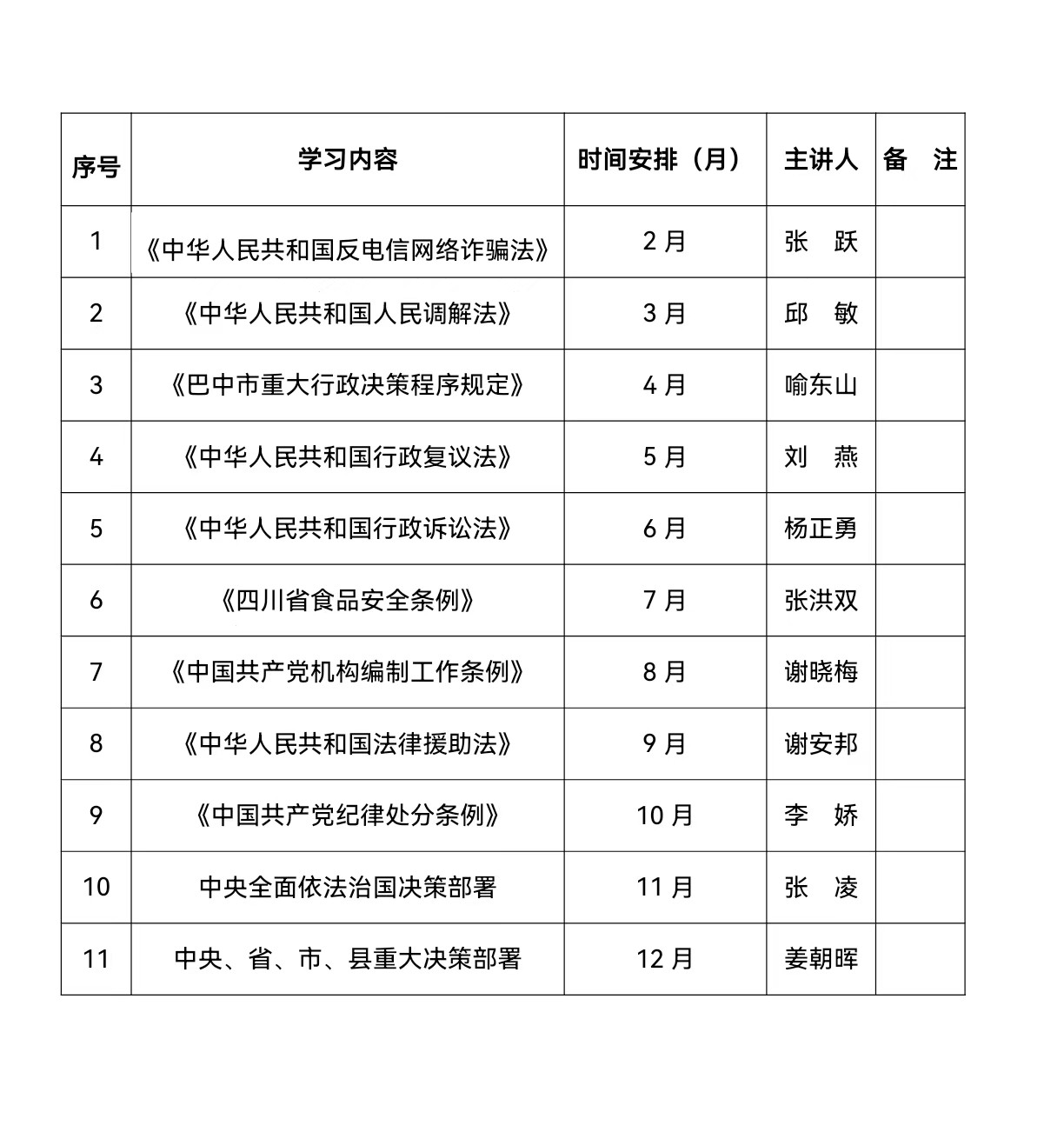 开云体育足球官网司法局2024年度“会前学法”计划安排表