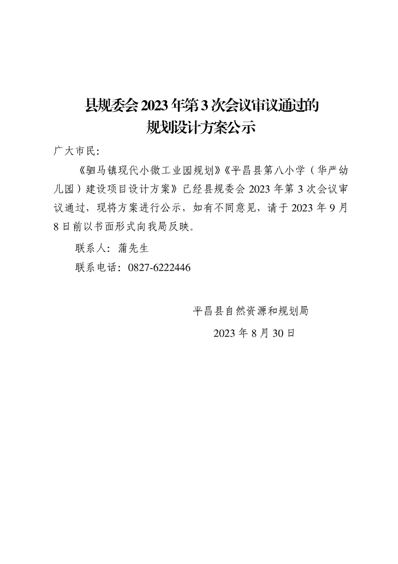 县规委会2023年第3次会议审议通过的规划设计方案公示