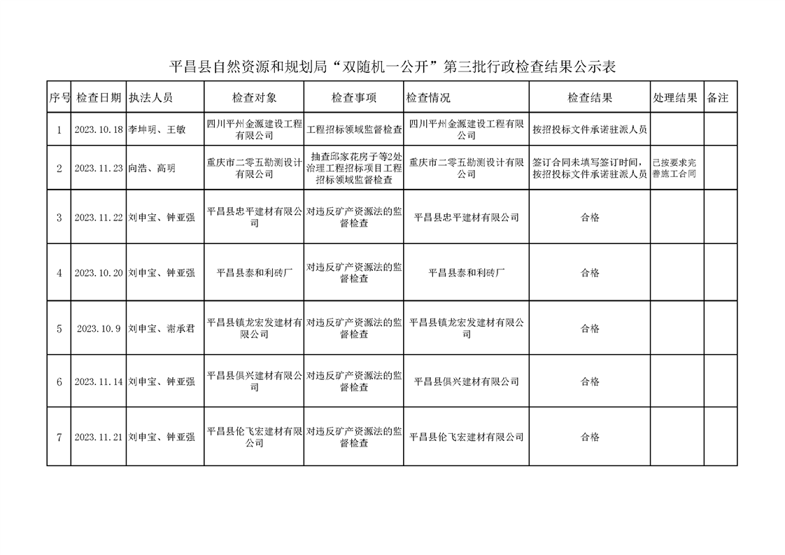 开云体育足球官网自然资源和规划局“双随机、一公开”第三批行政检查结果公示表