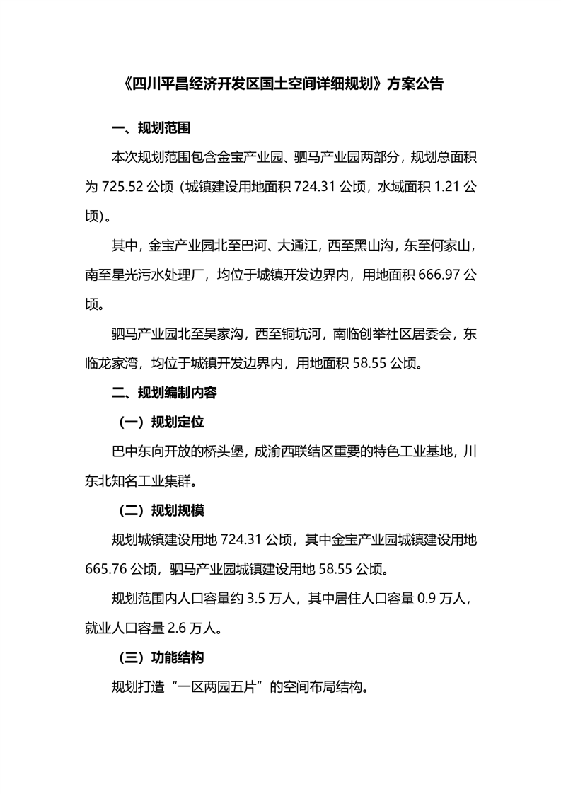《四川平昌经济开发区国土空间详细规划》方案公告