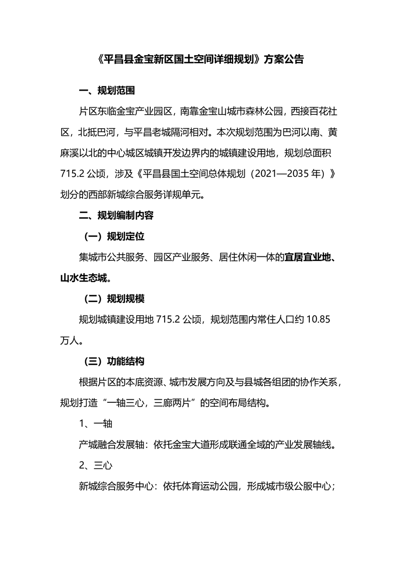 《开云体育足球官网金宝新区国土空间详细规划》方案公告