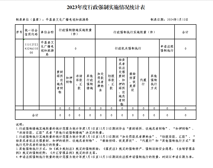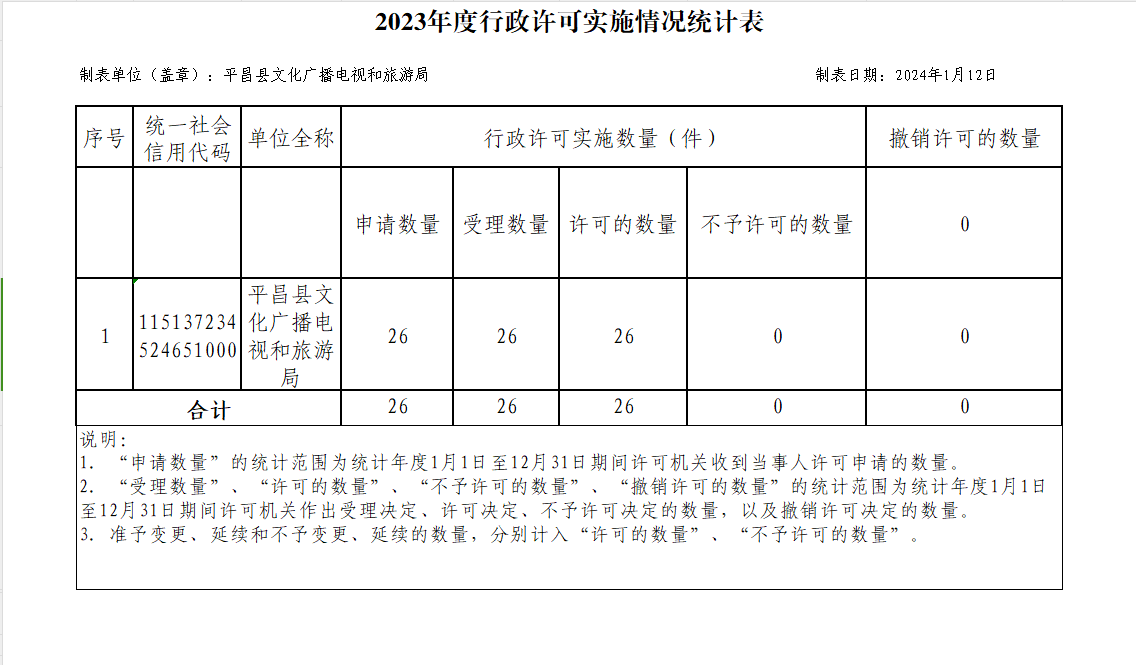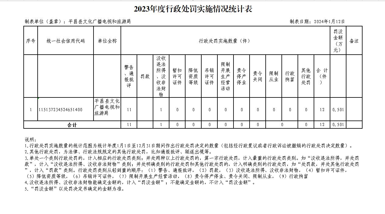 开云体育足球官网文化广播电视和旅游局2023年行政许可、行政处罚、行政强制、行政检查实施情况