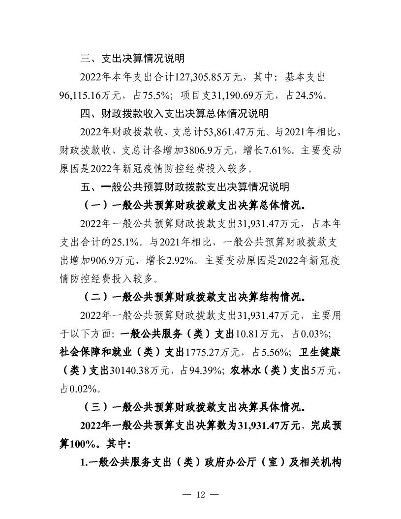 开云体育足球官网卫生健康局2022年度部门决算公开