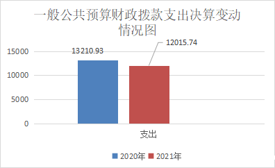 2021年一般公共预算财政拨款支出12015.74万元,占本年支出合计的100%。与2020年相比,一般公共预算财政拨款支出减少1195.19万元,下降9.05%。主要变动原因是优抚对像死亡及各项支出的压缩。