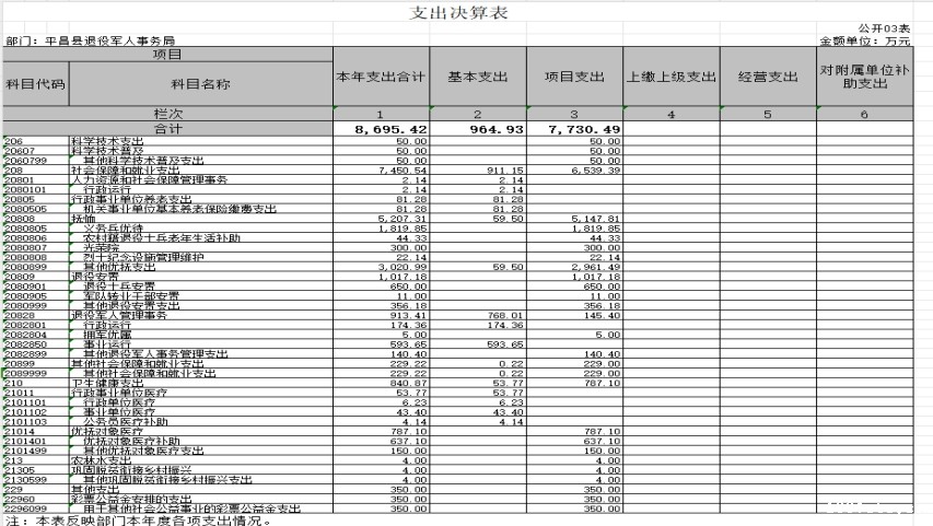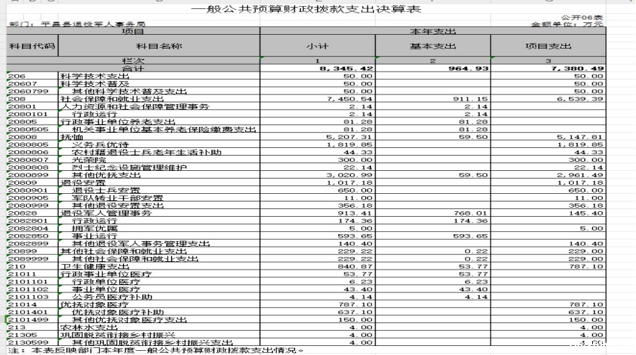 (注:数据来源于财决04表,仅罗列本部门涉及的支出。)