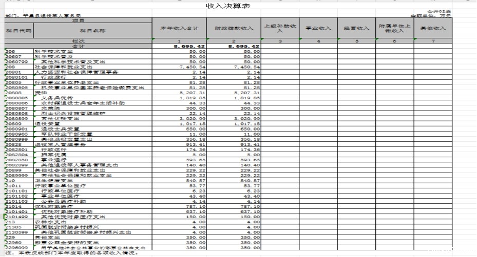 (注:数据来源于财决01-1表,仅罗列本部门涉及的全部功能分类科目,至类级。)