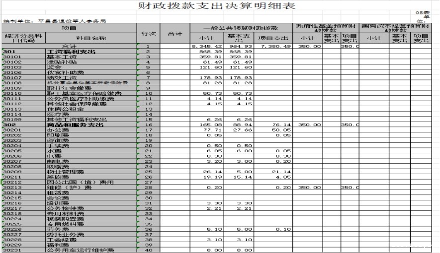 (注:数据来源于财决07表和财决08-1表,仅罗列本部门实际支出涉及的经济分类科目。)