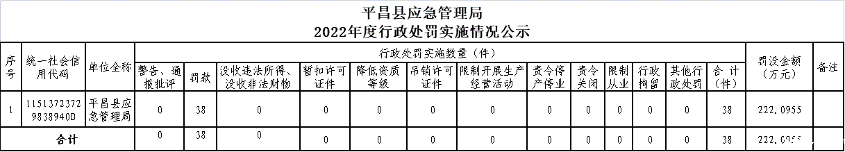 开云体育足球官网应急管理局 2022年度行政处罚实施情况公示