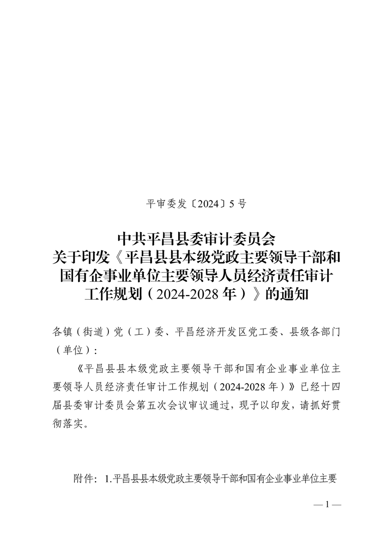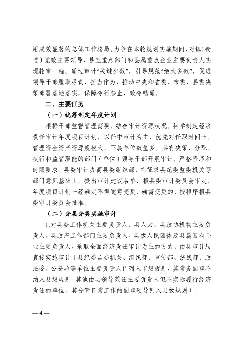 关于印发《开云体育足球官网县本级党政主要领导干部和国有企事业单位主要领导人员经济责任审计工作规划(2024-2028年)》的通知