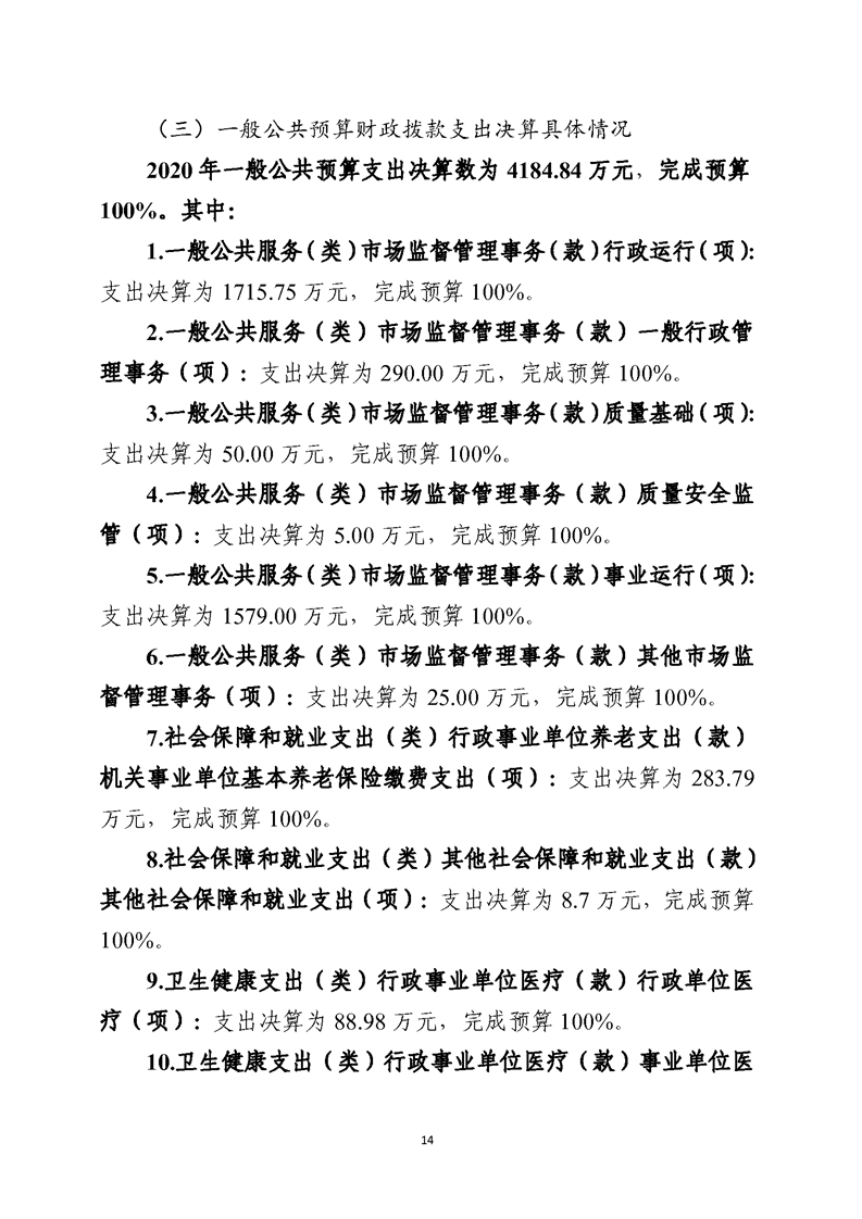 开云体育足球官网市场监督管理局2020年度部门决算公开