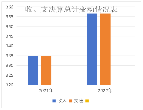 2022年度收、支总计356.66万元。与2021年相比,收、支总计各增加21.91万元,增长6.5%。主要变动原因是人员增加。