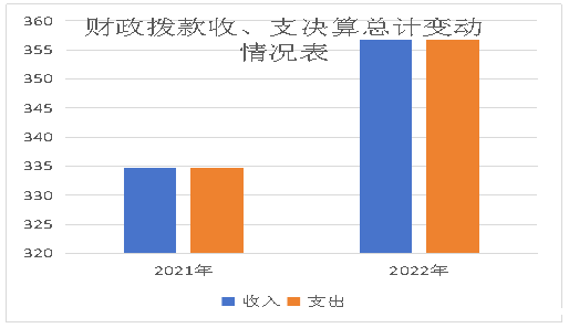 2022年财政拨款收、支总计356.66万元。与2021年相比,财政拨款收、支总计各增加21.91万元,增长6.5%。主要变动原因是人员增加。