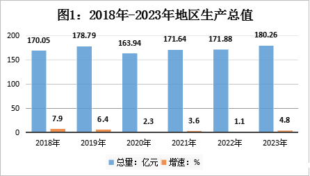 3.公报中2018年地区生产总值增长速度等相关经济数据为根据第四次全国经济普查结果修订后的数据;按照我国地区生产总值统一核算和数据发布制度规定,地区生产总值核算包括初步核算和最终核实两个步骤。经最终核实,2022年,全县地区生产总值现价总量为171.88亿元,按可比价计算,比上年增长1.1%。