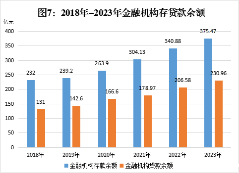 年末全县金融机构人民币存款余额375.47亿元,同比增长10.1%,金融机构人民币贷款余额230.96亿元,同比增长11.8%。