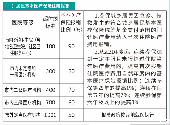 5.特困、孤儿、低保起付线为0;防止返贫监测对象、低保边缘家庭成员、因病致贫重症患者起付线分别为全市上年城乡居民人均可支配收入5%、10%、25%。