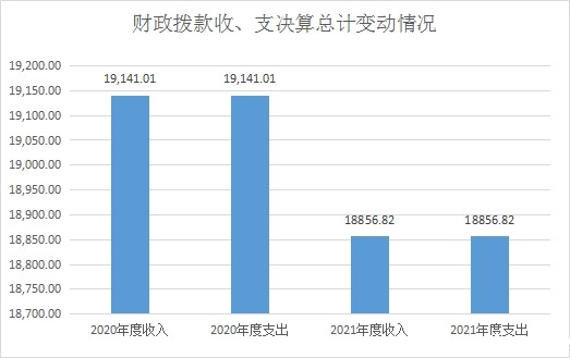 2021年度收、支总计各18856.82万元。与2020年相比,收、支总计各减少284.19万元,下降1.48%。主要变动原因是主要变动原因是金宝新区征地拆迁安置补偿和城市开发建设各项工作的减少了资金投入。