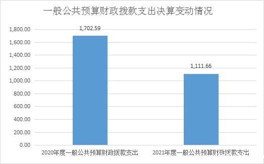 2021年一般公共预算财政拨款支出1,111.66元,占本年支出合计的占6%与2020年相比,一般公共预算财政拨款支出减少590.93万元,下降34.71%。主要变动原因是随着金宝新区建设,城市配套服务不断完善,减少了相应的运行经费。