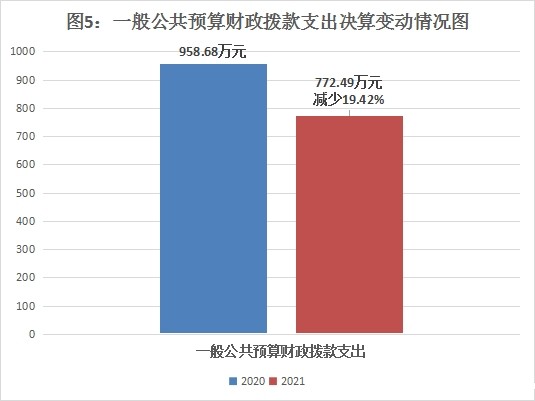 2021年一般公共预算财政拨款支出772.49万元,占本年支出合计的88.34%%。与2020年相比,一般公共预算财政拨款减少186.19万元,减少19.42%。主要变动原因是项目减少。