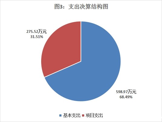 2021年本年支出合计874.49万元,其中:基本支出598.97万元,占68.49%;项目支出275.52万元,占31.51%。