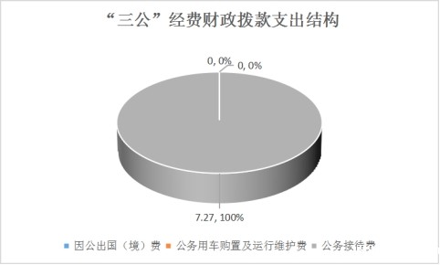 2021年“三公”经费财政拨款支出决算中,因公出国(境)费支出决算0.00万元,占0%;公务用车购置及运行维护费支出决算0.00万元,占0%;公务接待费支出决算7.27万元,占100%。具体情况如下: