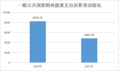 2021年一般公共预算财政拨款支出27125.36万元,占本年支出合计的93.28%。与2020年相比,一般公共预算财政拨款支出减少1795.01万元,下降6.21%。主要变动原因是部门正常开支浮动。
