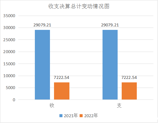 2022年度收、支总计各7222.54万元。与2021年29079.21万相比,收、支总计各减少21856.67万元。主要变动原因是2022年原坦溪小学、华严小学、信义小学等10个事业单位纳入了教科体局部门决算。