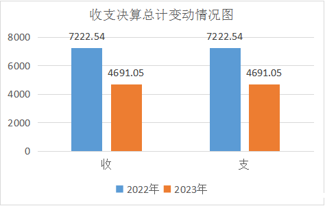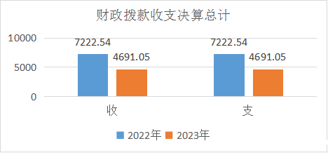 2023年度财政拨款收、支总计均为4691.05万元。与2022年度相比,财政拨款收、支总计各减少2534.49万元,下降35%。主要变动原因是基础设施建设工程项目减少,政府性基金支出减少。