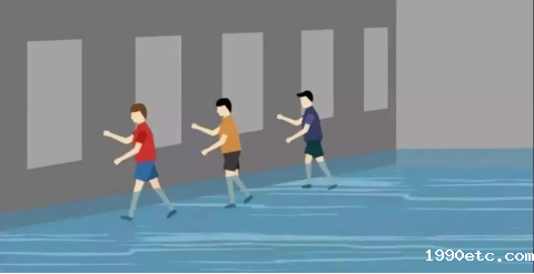 ►时刻观察水位情况,做好转移准备,按照预先设计路线撤离,如无撤退路线,应尽量选择往高地逃生;