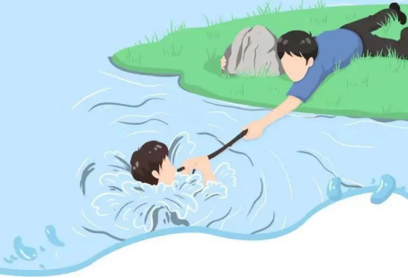 ►寻找竹竿、树枝等递给落水者,也可以把衣服打成绳结抛给落水者,救人时要趴在地上降低重心,以免被拉入水中;