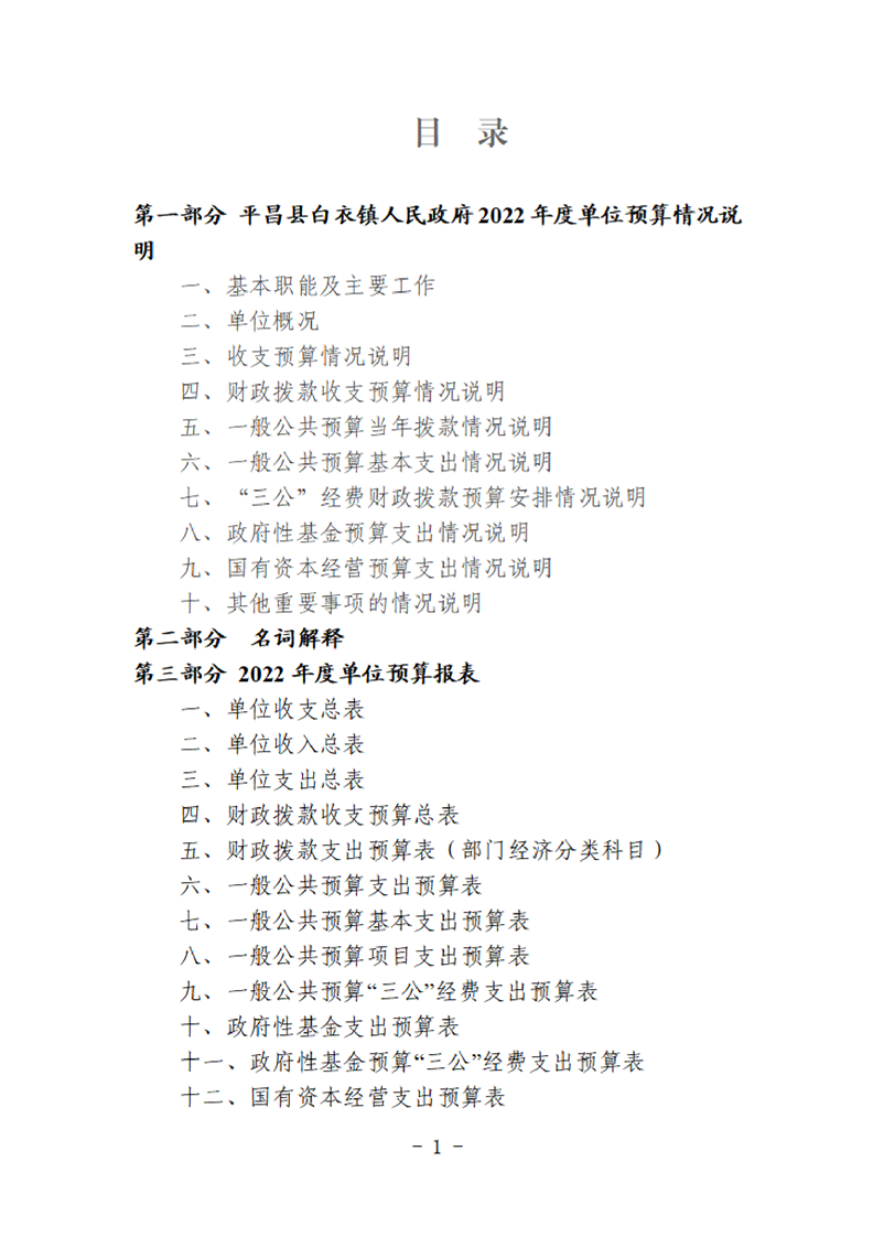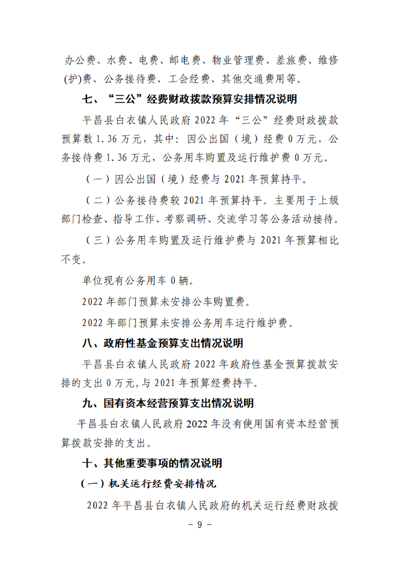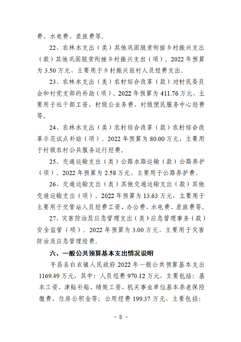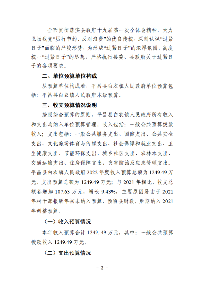 平昌白衣镇2022年单位预算公开编制说明