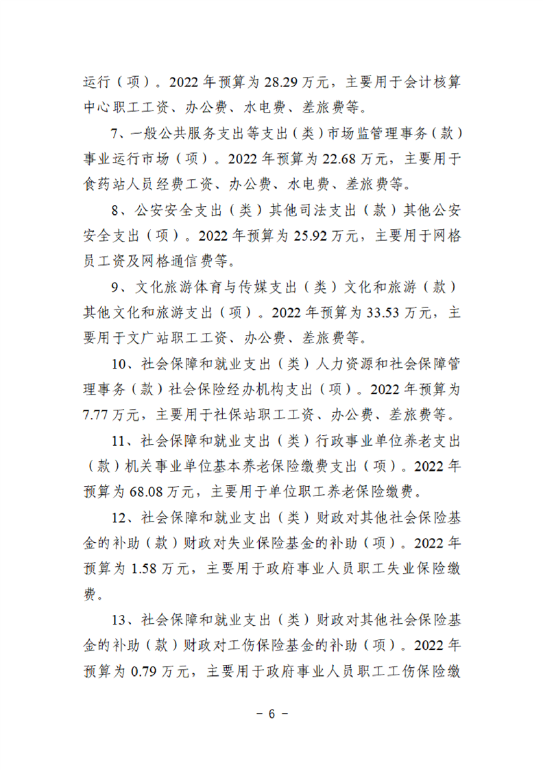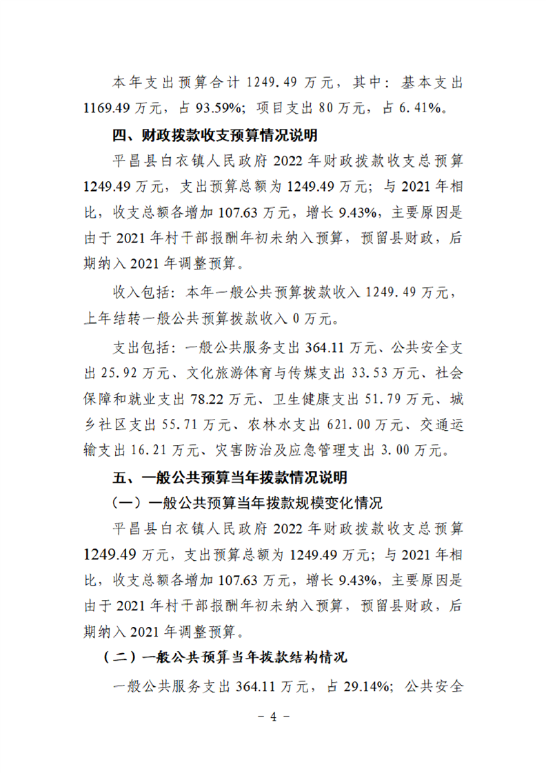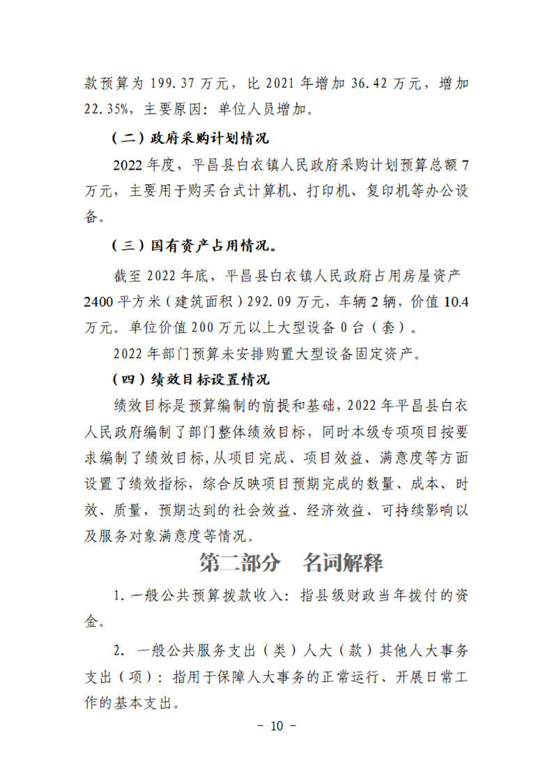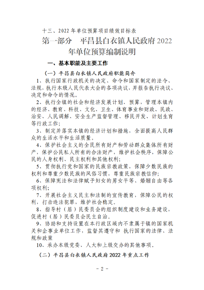 平昌白衣镇2022年单位预算公开编制说明