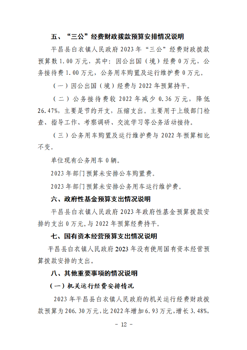 开云体育足球官网白衣镇人民政府2023年单位预算
