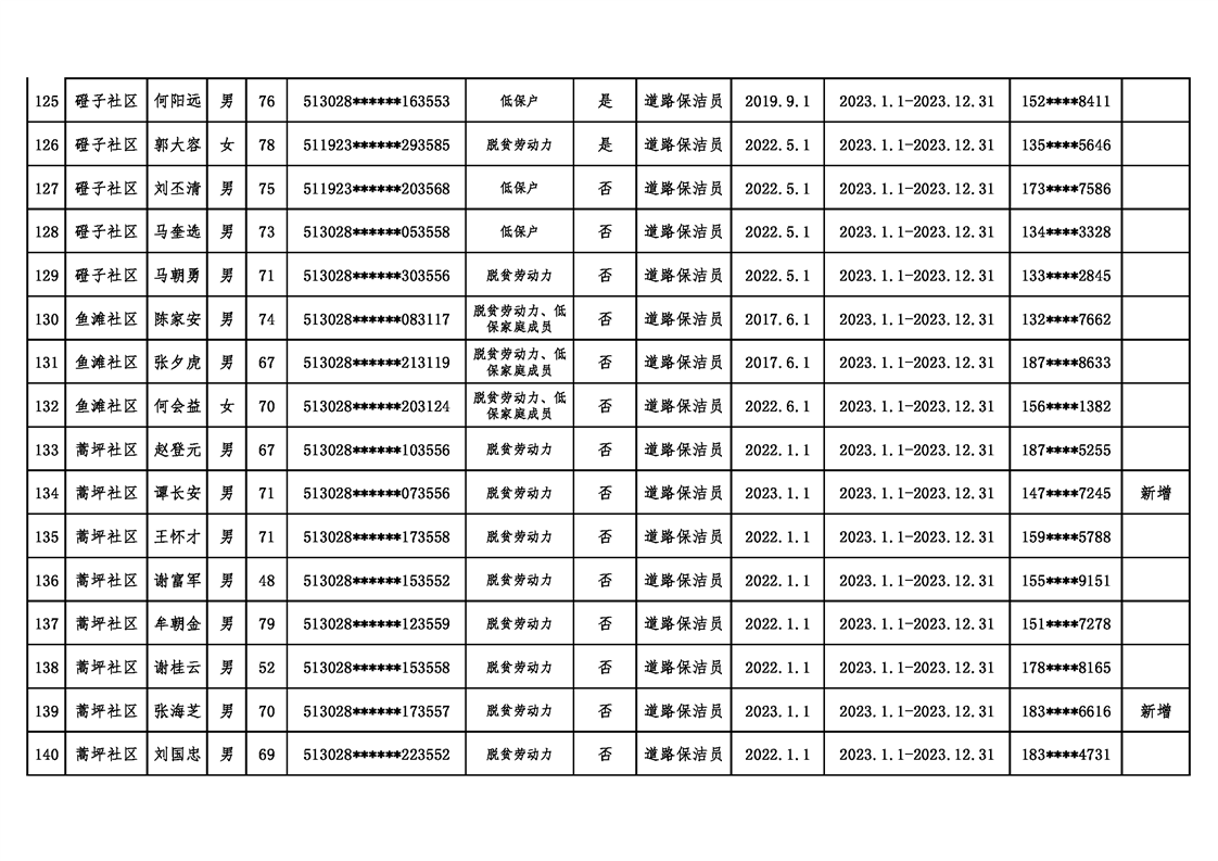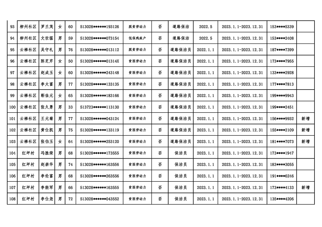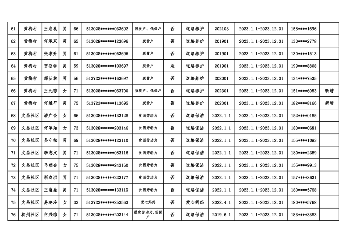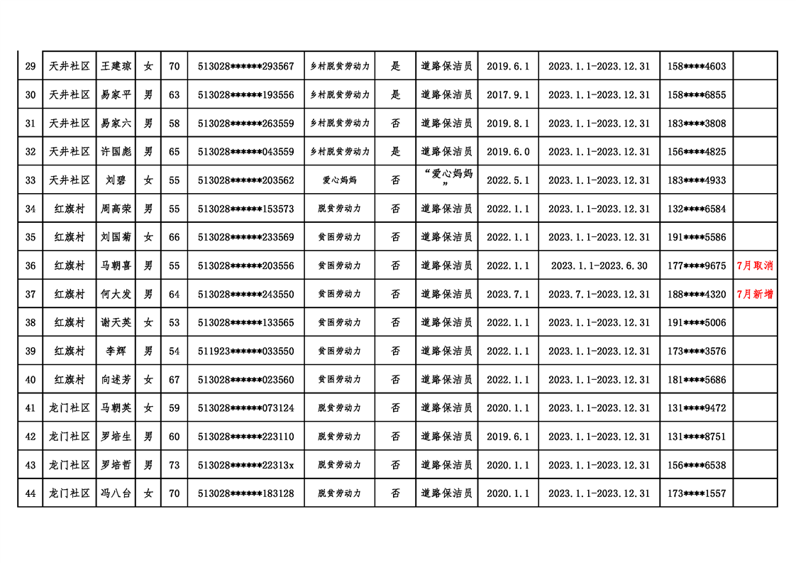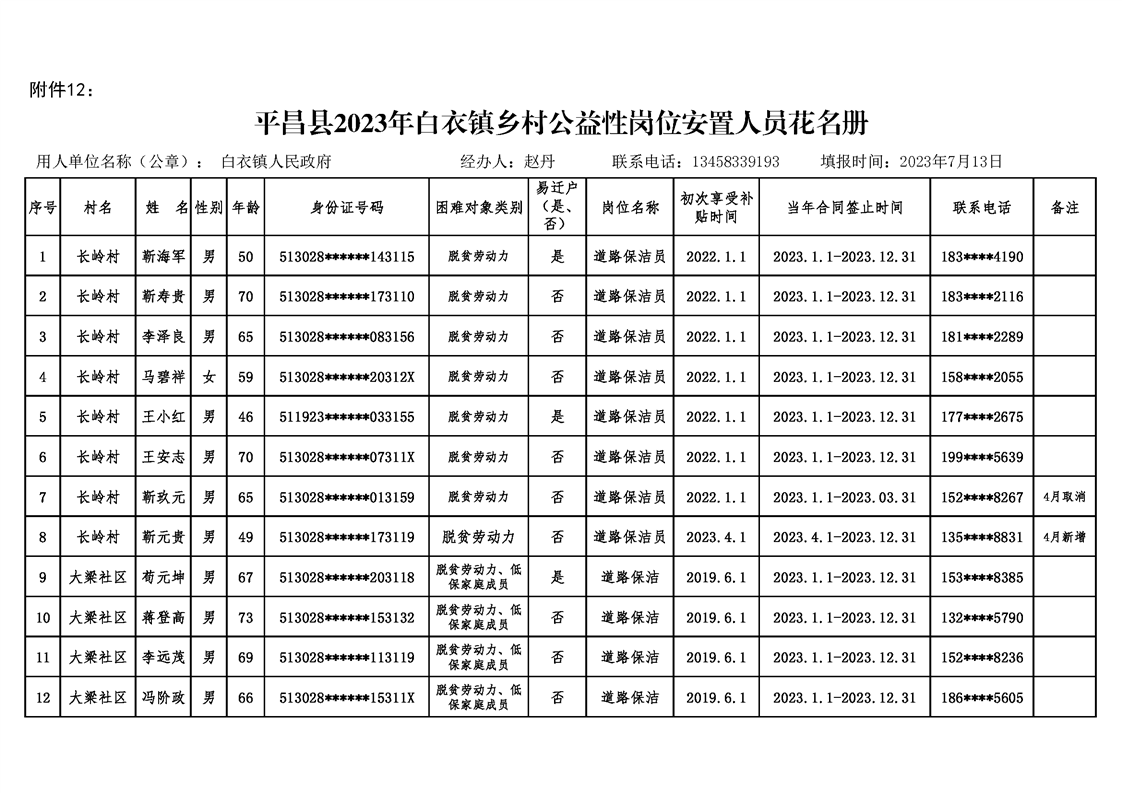 开云体育足球官网2023年白衣镇乡村公益性岗位安置人员花名册