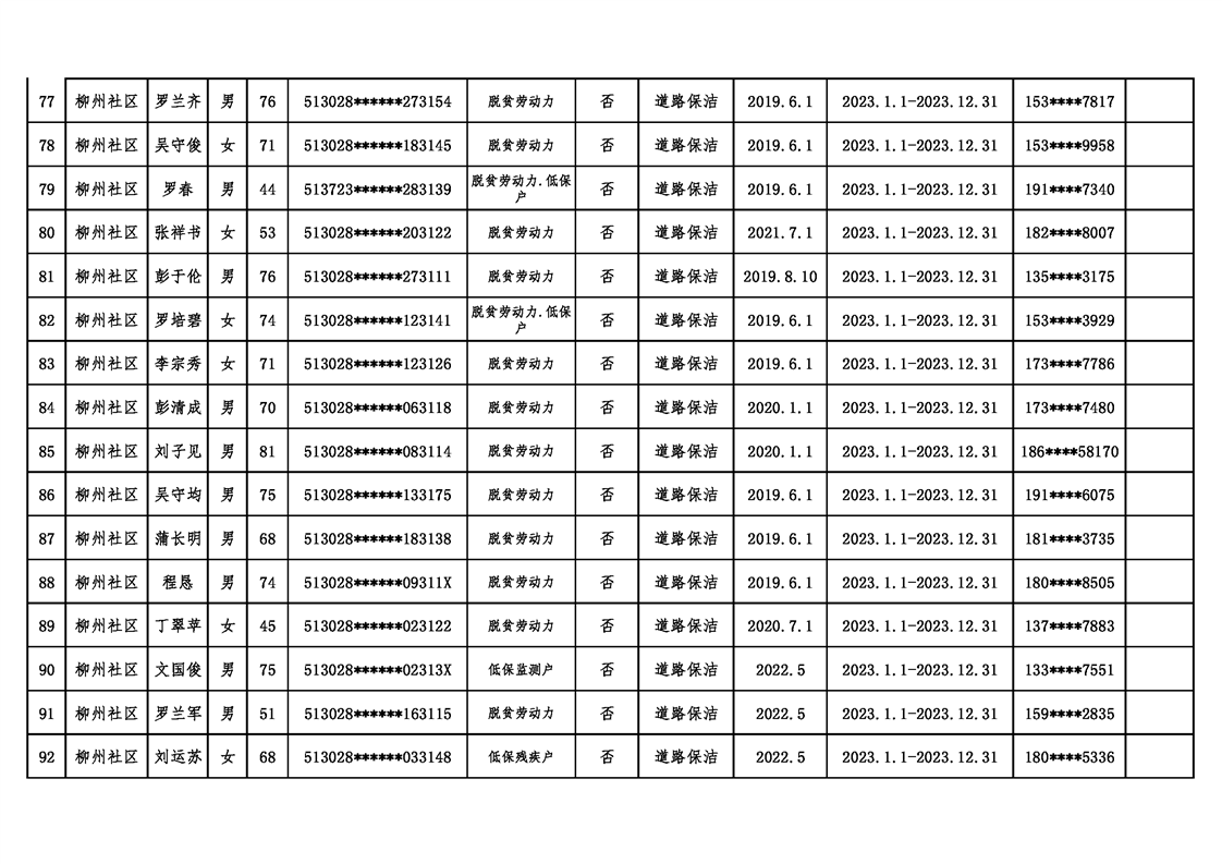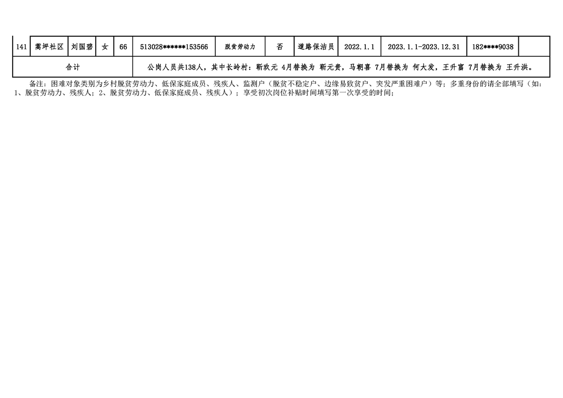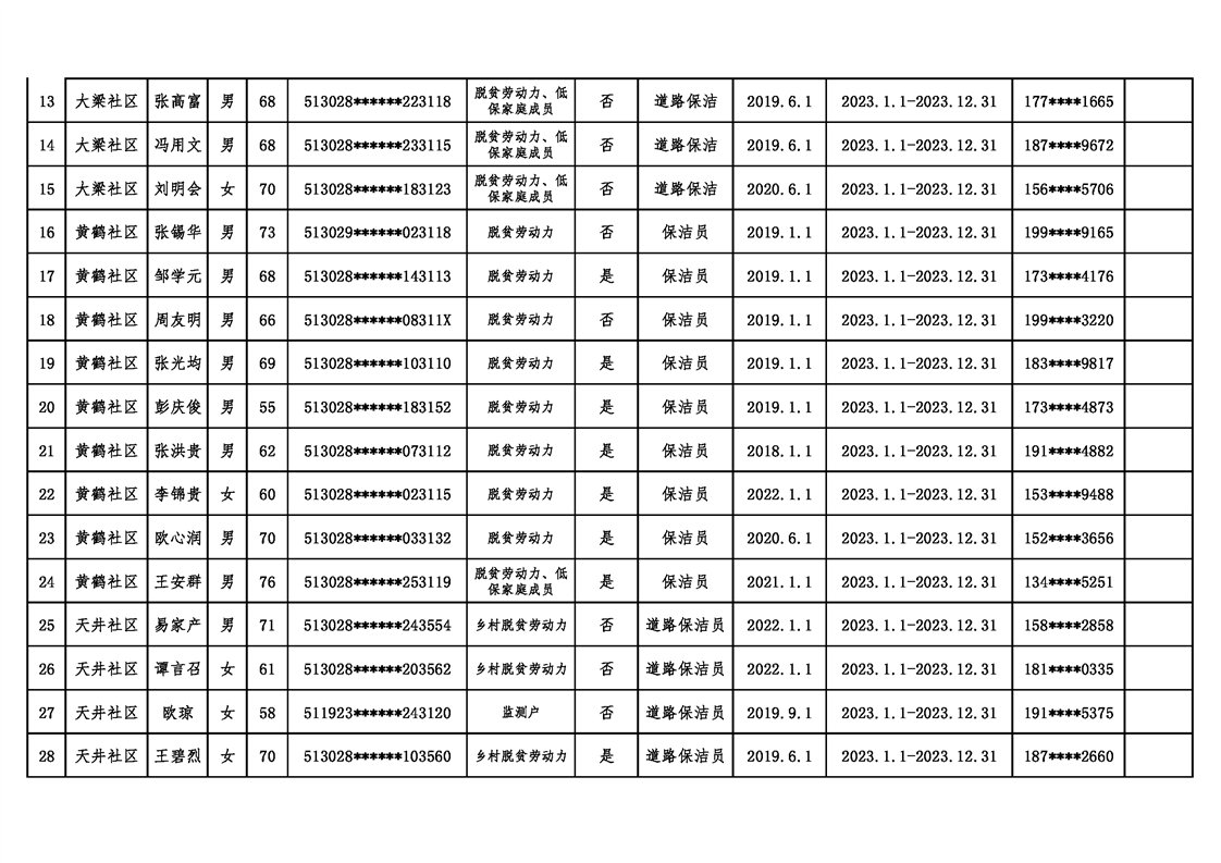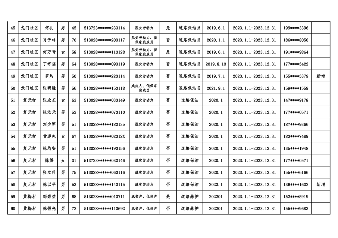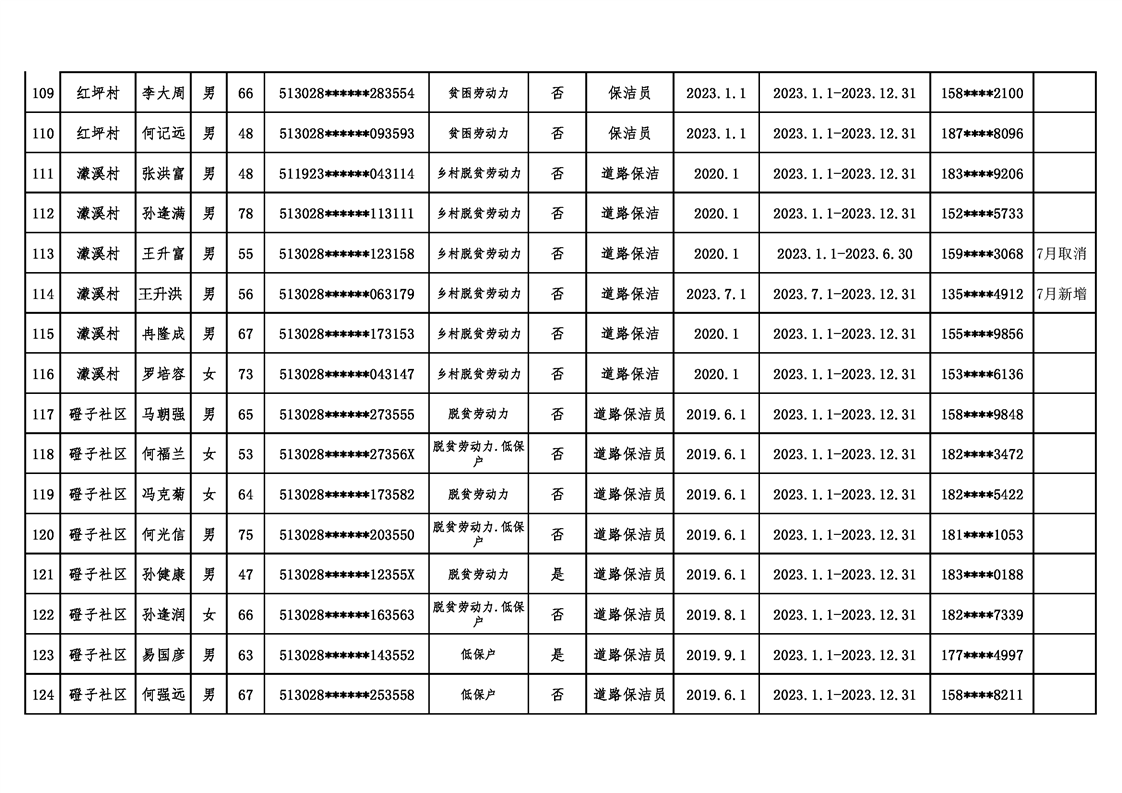 开云体育足球官网2023年白衣镇乡村公益性岗位安置人员花名册