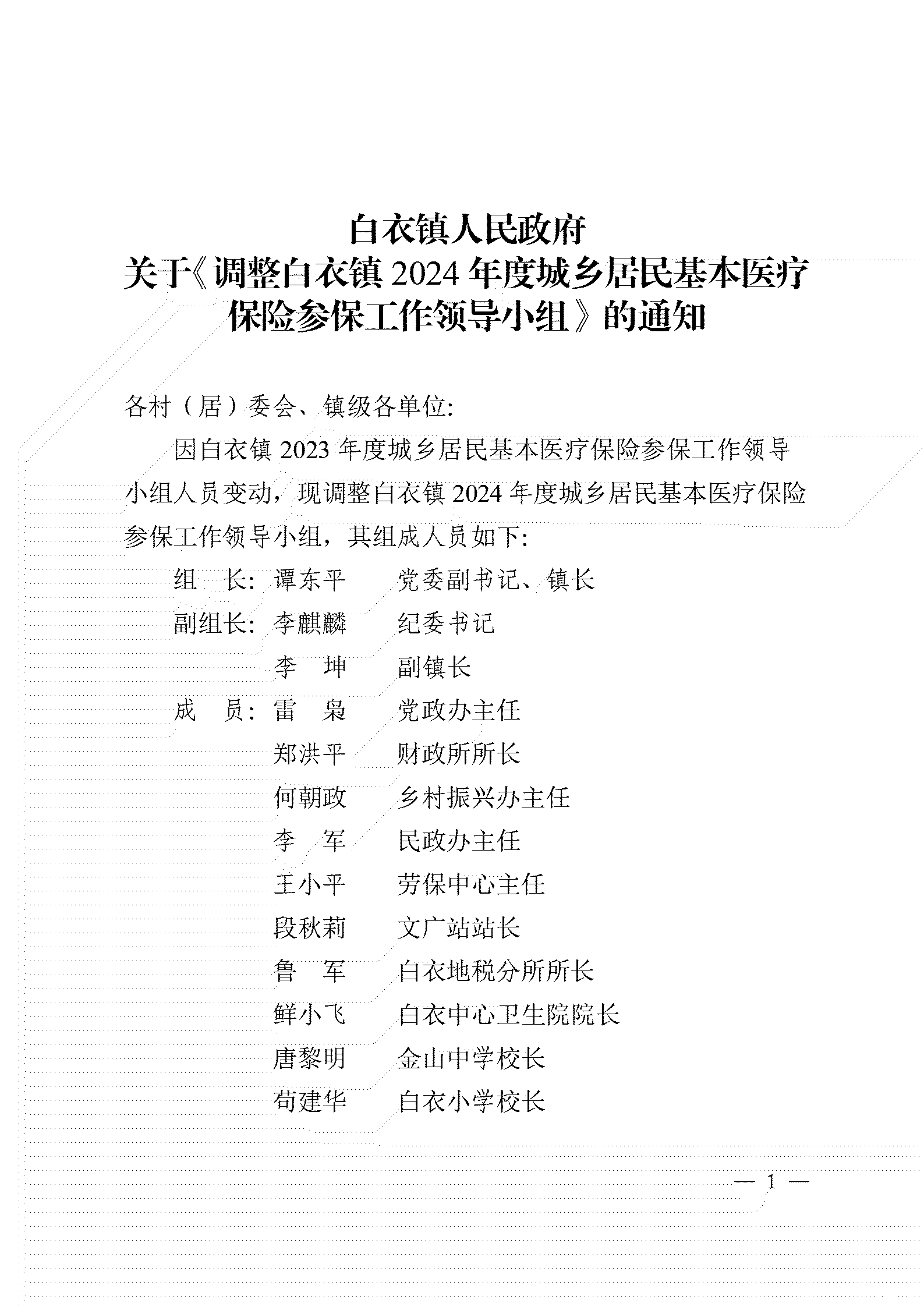 关于《调整白衣镇2024年度城乡居民基本医疗保险参保工作领导小组》的通知