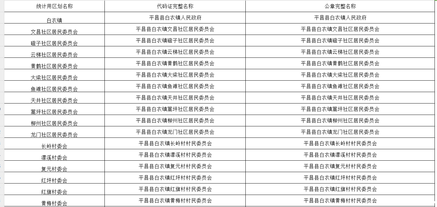 开云体育足球官网白衣镇村居委会完整名称核实表