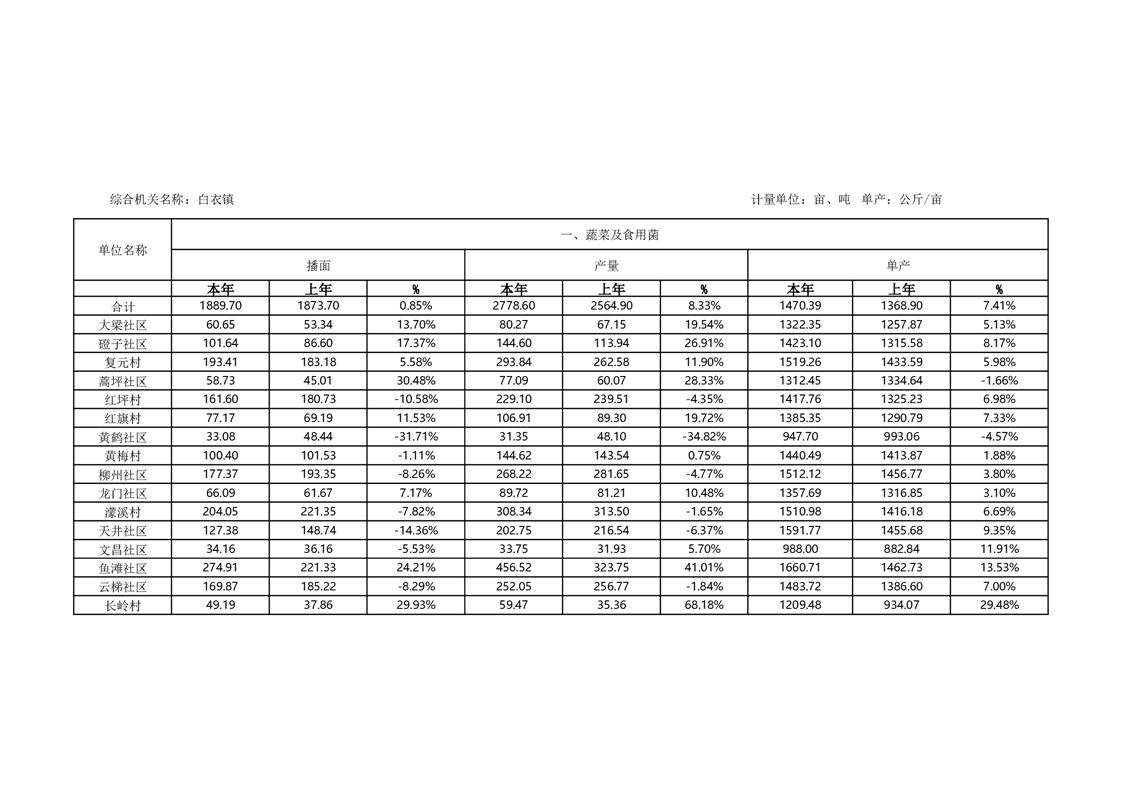 白衣镇2024年四季度蔬菜及食用菌统计数据