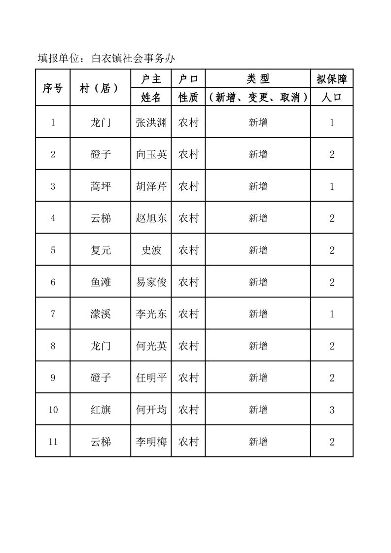 白衣镇2025年7月新增低保花名册