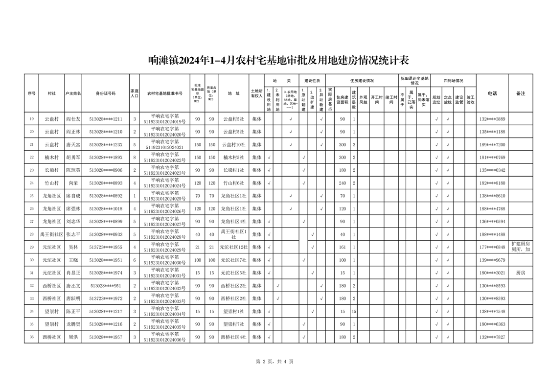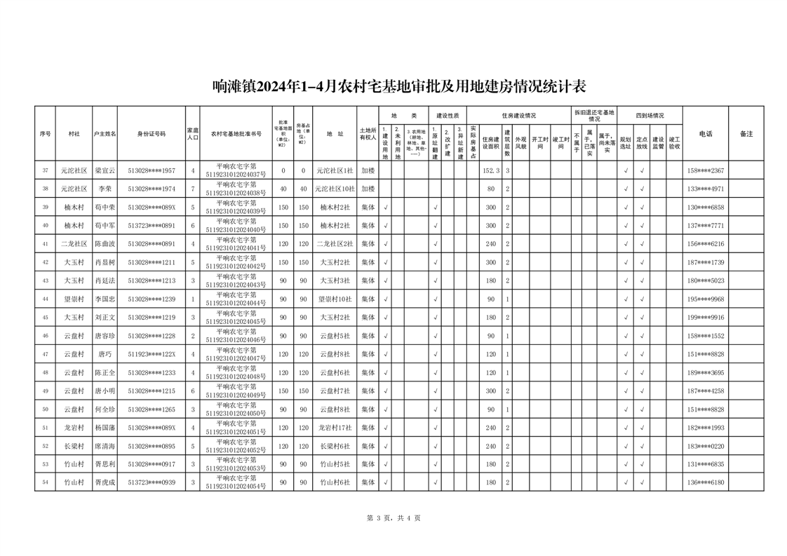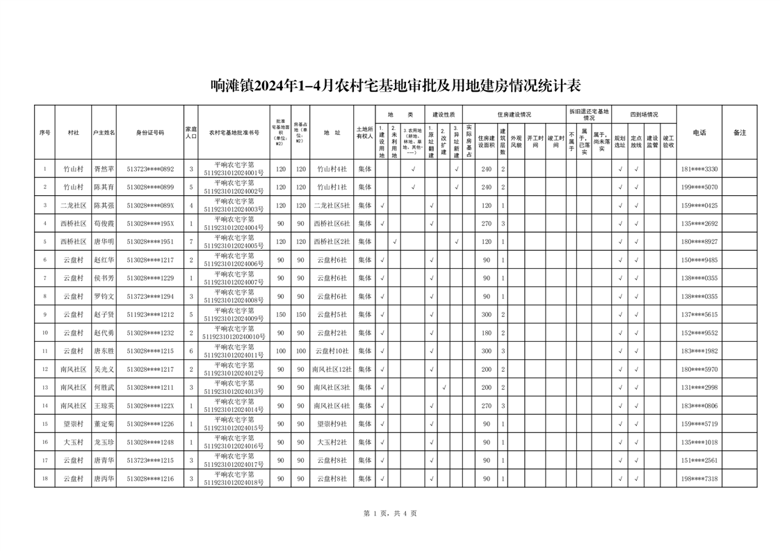 开云体育足球官网响滩镇2024年农村宅基地审批及用地建房审批情况(第一批)