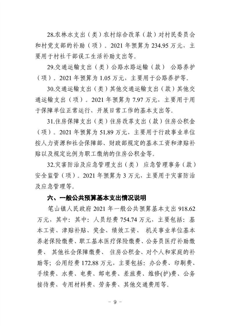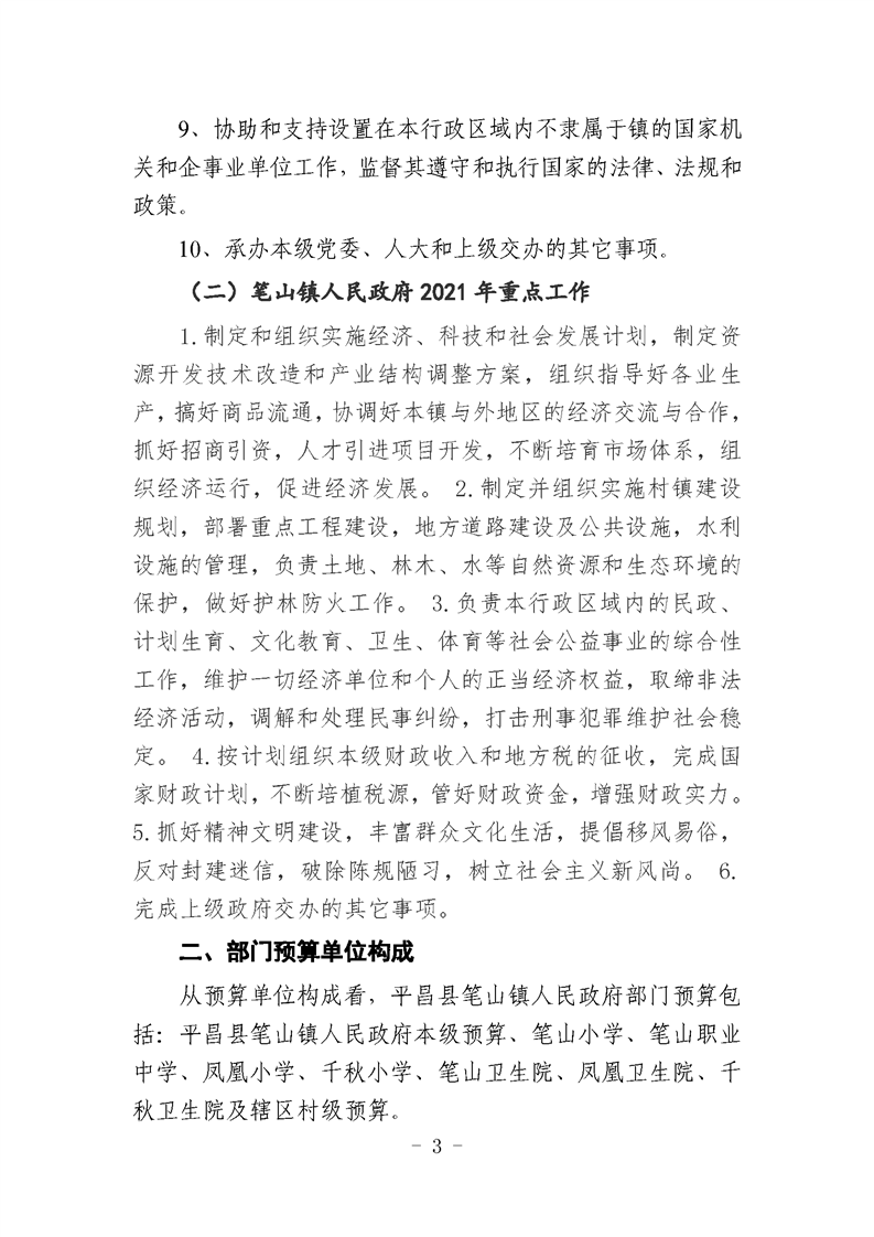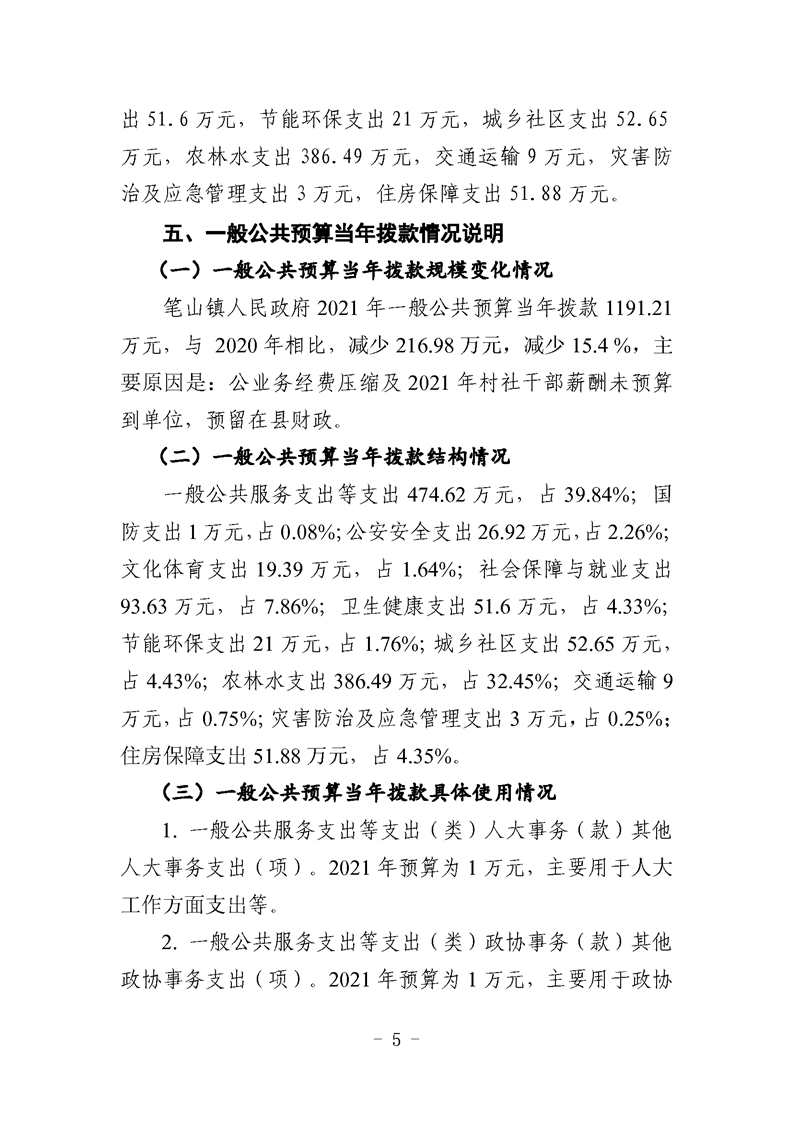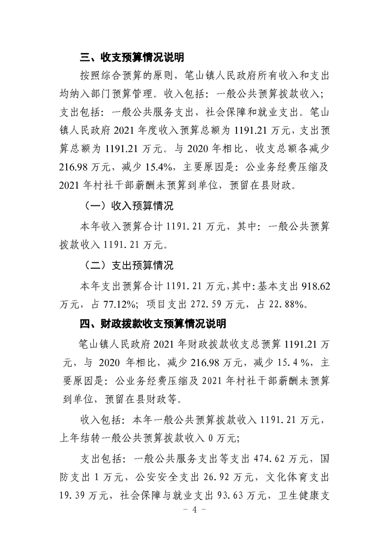 开云体育足球官网笔山镇人民政府2021年部门预算公开