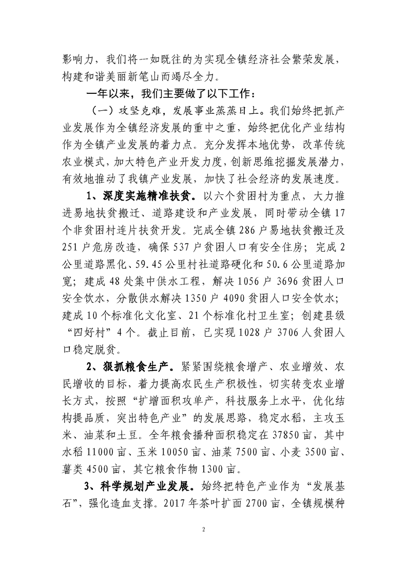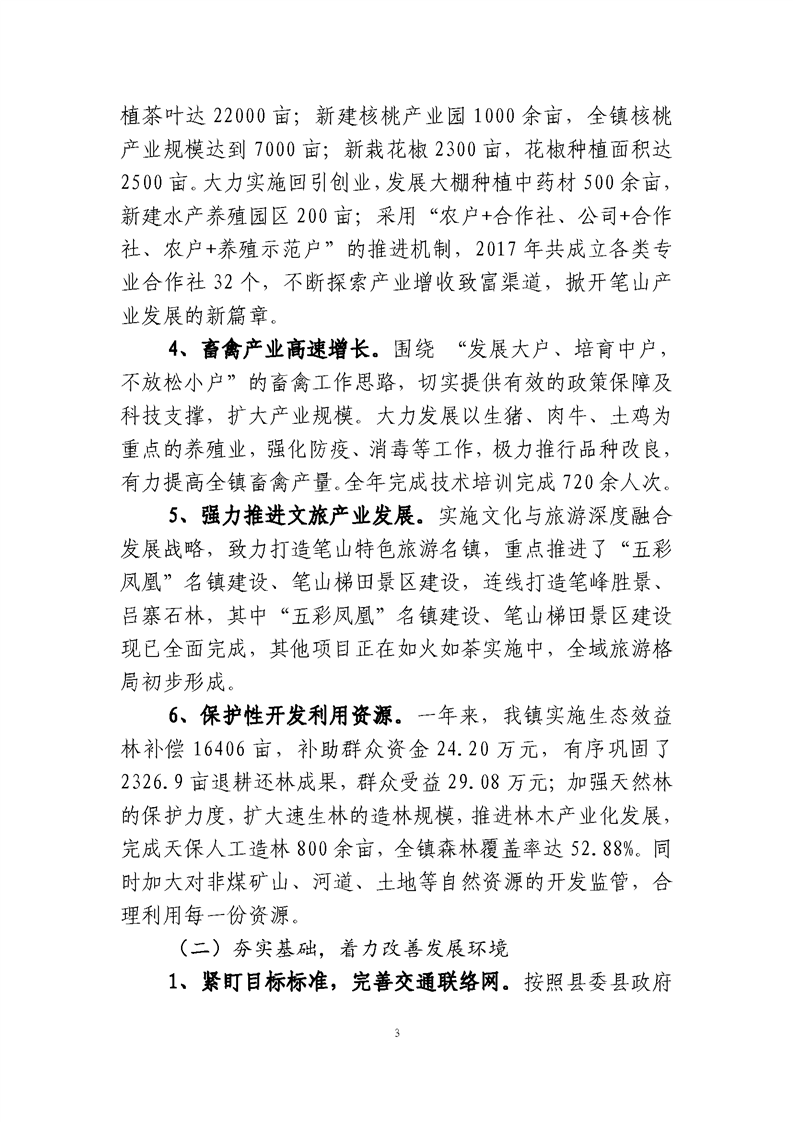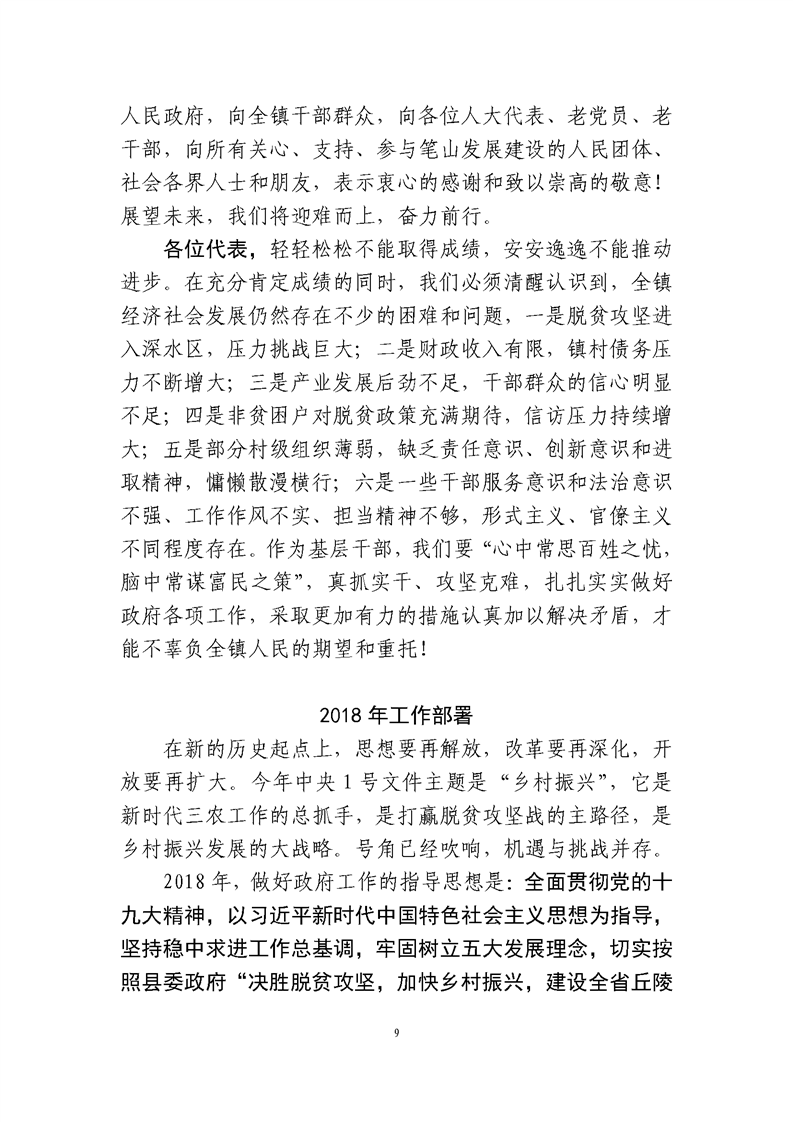 笔山镇2018年政府工作报告