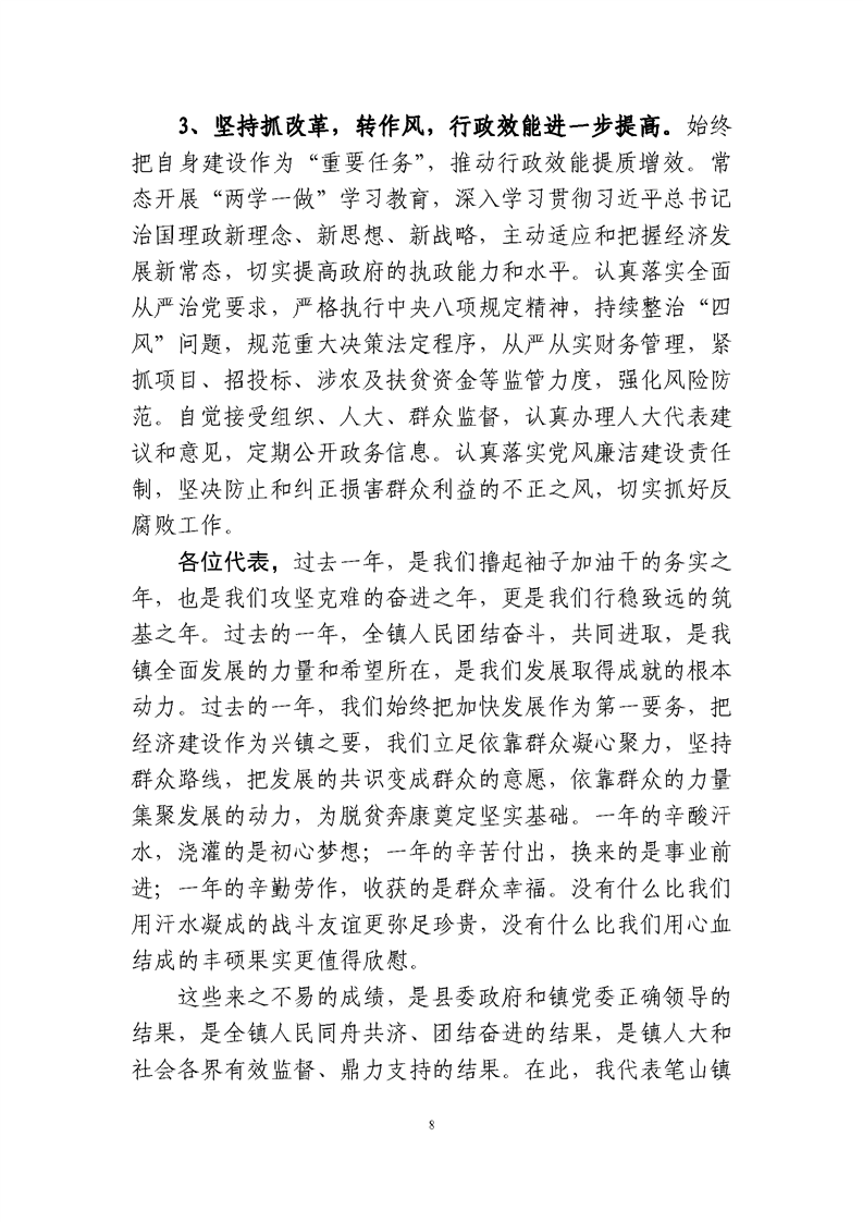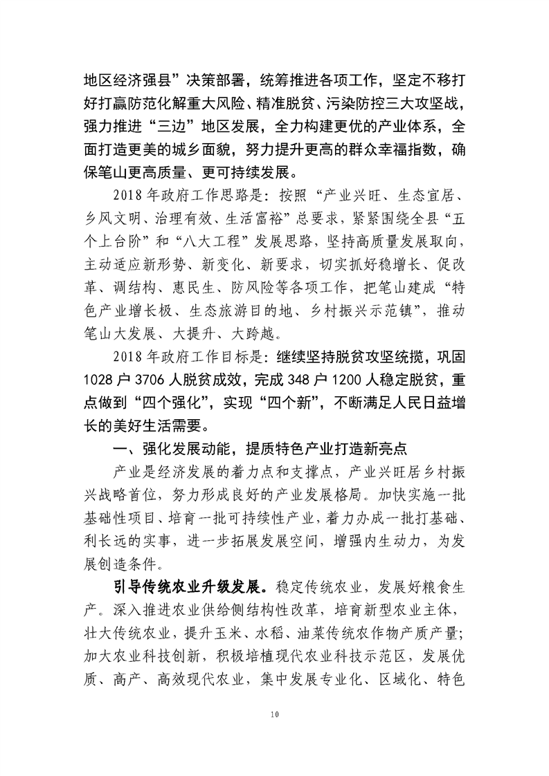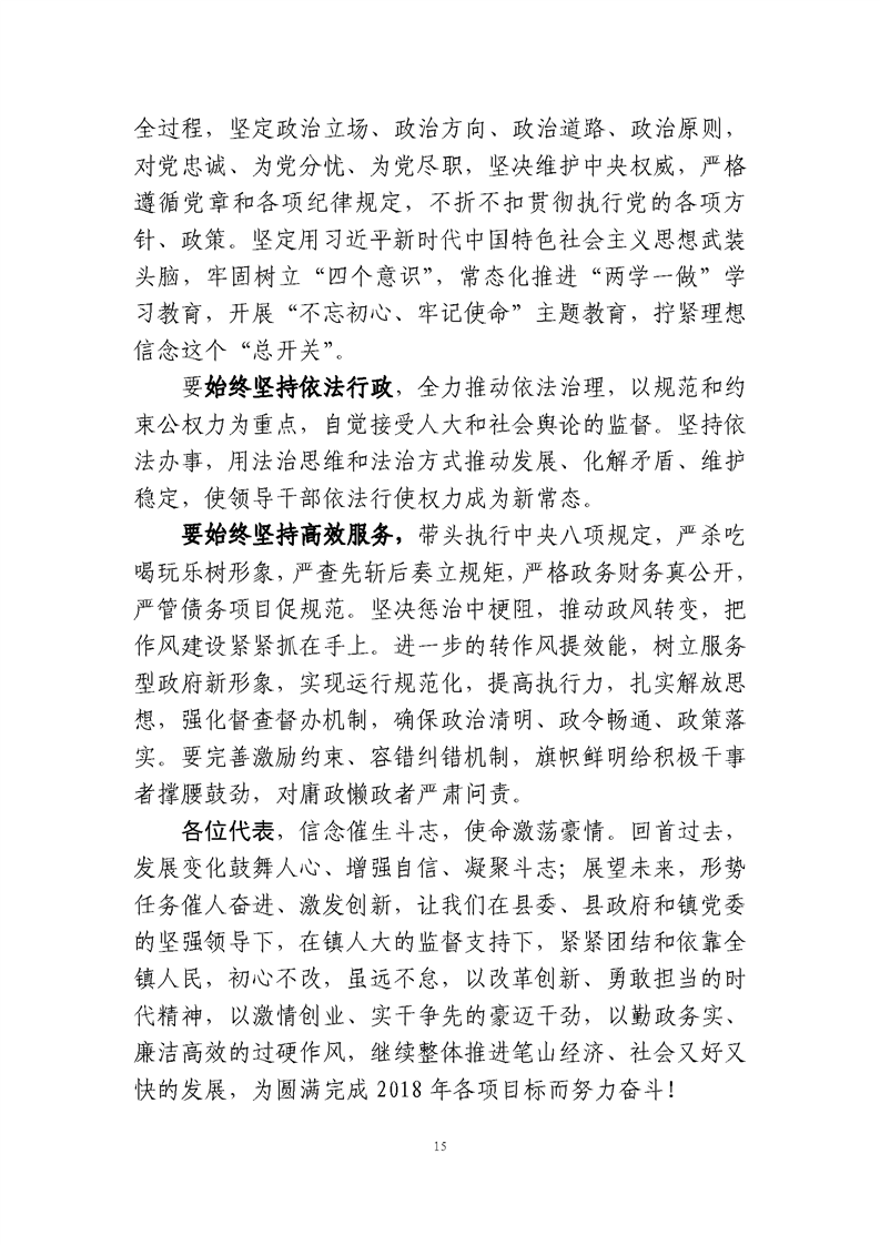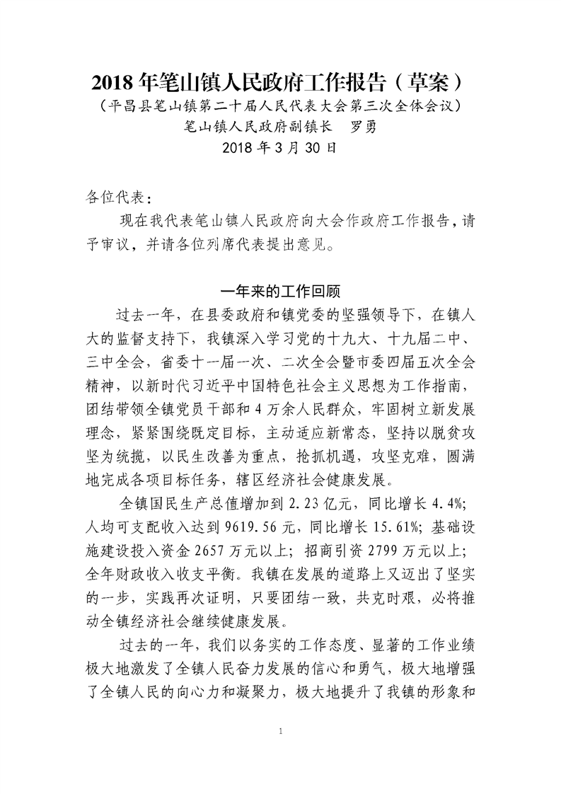 笔山镇2018年政府工作报告