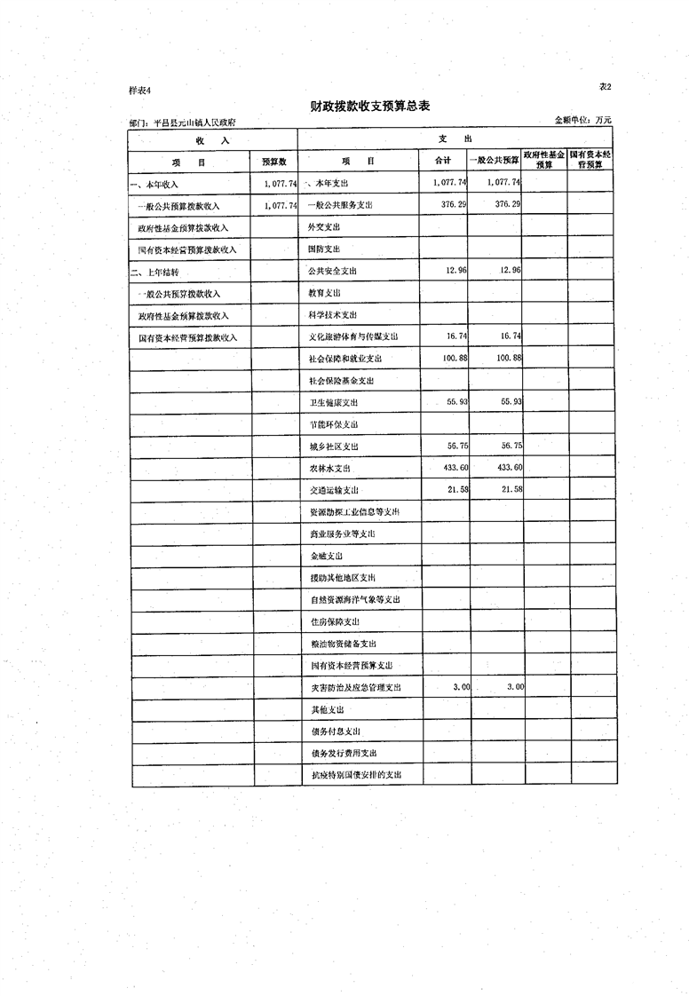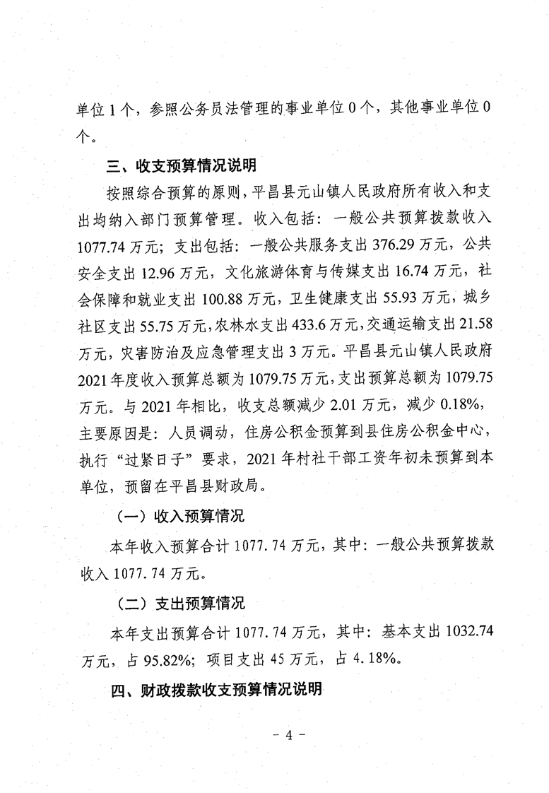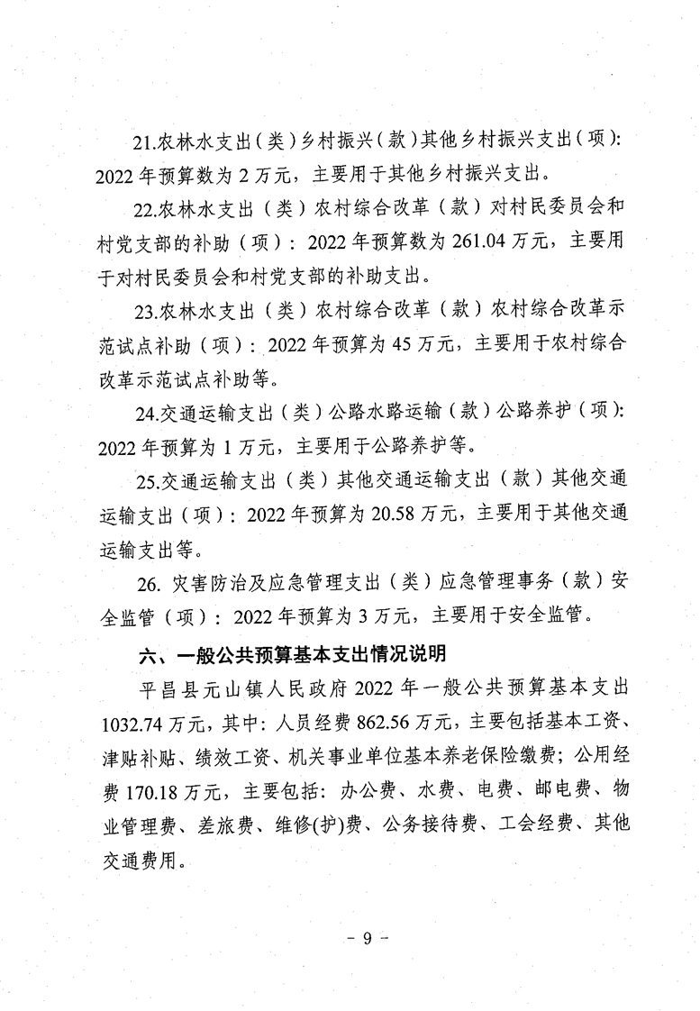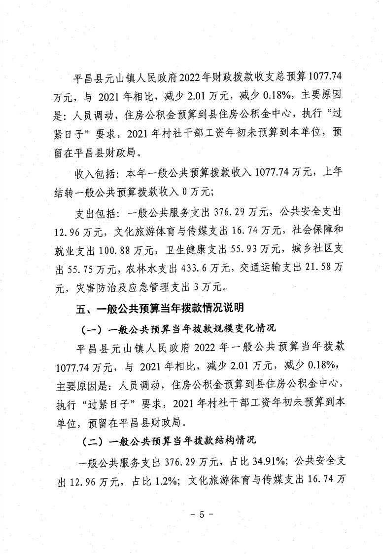 开云体育足球官网元山镇人民政府2022年部门预算公开